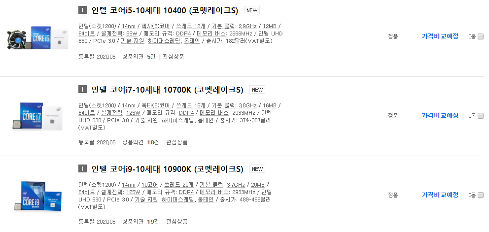 개인적으로 이번 10세대 인텔 CPU는 적어도 8월에서 9월이 되어야 가격안정화가 이루어질 것으로 예상됩니다. 무엇보다 5월 중순으로 예상되는 정식 출시에는 MSRP보다 훨씬 높은 가격으로 형성이 될 텐데, 코로나바이러스-19의 영향으로 매물이 쉽게 들어오지 않는 상황에서 당분간 높은 수요에 비해 공급이 원활하게 되지 않아 가격이 떨어지지 않을 것 같네요. 이런 현상은 새로운 부품의 출시마다 매번 있어왔지만 이번엔 그 텀이 꽤 길 것 같습니다.